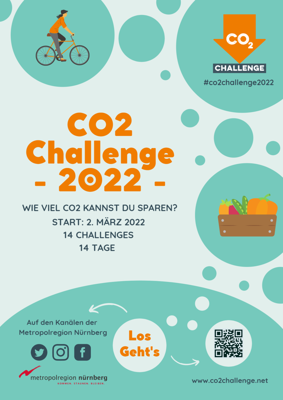 Jeden Tag wird auf der Homepage der CO2-Challenge (www.co2challenge.net) und auf den Social-Media-Kanälen der Metropolregion Nürnberg unter #co2challenge2022 eine neue Herausforderung mit interessanten Hintergrundinformationen veröffentlicht.