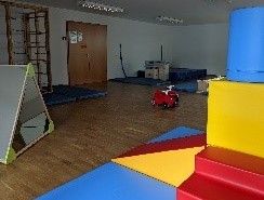 Im Turnraum haben die Kinder im Freispiel, oder bei pädagogisch geplanten Turnstunden, die Möglichkeit, durch verschiedene Materialien ihren natürlichen Bewegungsdrang bzw. ihre Aktivität auszuüben.