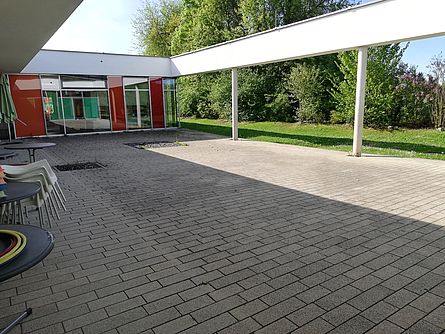Nach einem langen Schultag ist uns Bewegung als Ausgleich zum langen Sitzen und Lernen sehr wichtig. Wir verfügen deshalb in der Karolingerstraße über ein großzügiges Freigelände mit vielfältigen Aktions- und Spielmöglichkeiten.