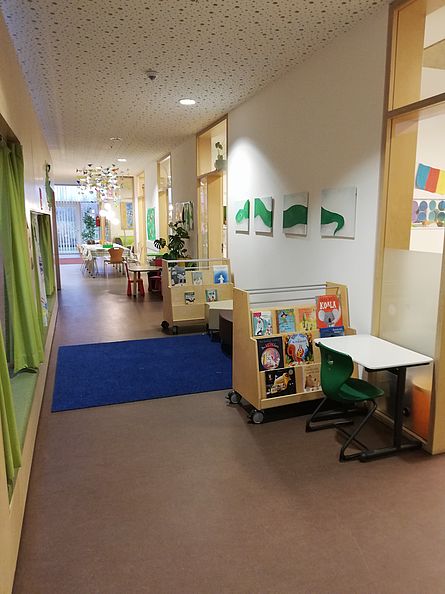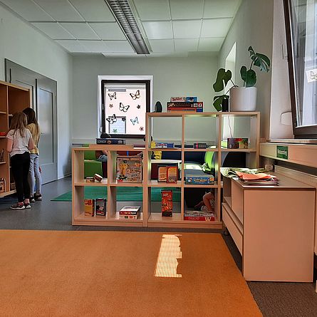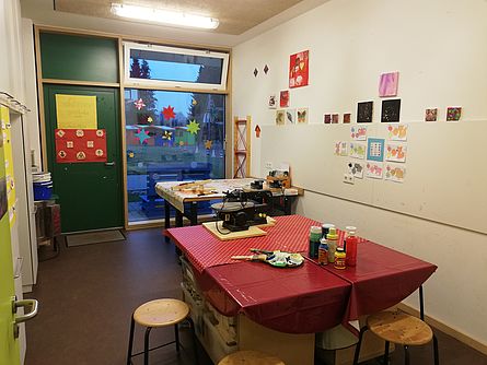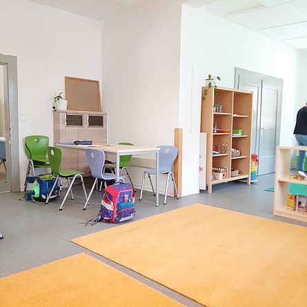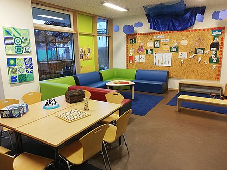 In unserem Haupthaus in der Karolingerstraße sind die jüngeren Kinder der 1. - 3. Klasse in zwei Gruppen untergebracht. Nach den Hausaufgaben, die die Hortkinder in ihrem festen Hausaufgabenzimmer erledigen, können sich sich im ganzen Haus und auf dem Gelände bewegen und ihren Nachmittag frei gestalten. Gruppenübergreifend spielen die Kinder nach Schulschluss in den verschiedenen Bereichen wie dem Konstruktionsraum, dem Werkraum, der Mehrzweckhalle, der Leseecke, dem Maltisch, dem Orientraum usw. Je nach Interesse und Bedürfnis können die Kinder wählen, mit wem und in welchen Räumen und Bereichen sie spielen wollen.