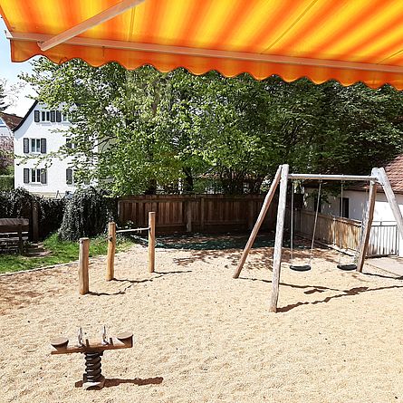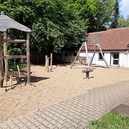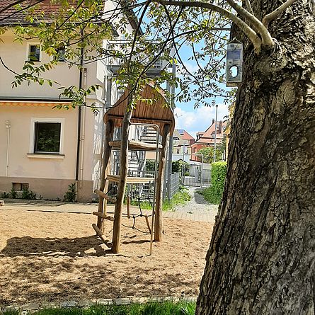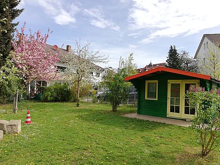 In der Stauffenbergstraße gibt es einen kleinen Garten zum Entspannen, Schaukeln, Klettern und Toben. Die älteren Kinder dürfen aber jederzeit in den großzügigen Garten der Karolingerstraße kommen und dort das Bewegungsangebot nutzen.