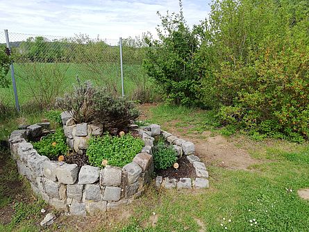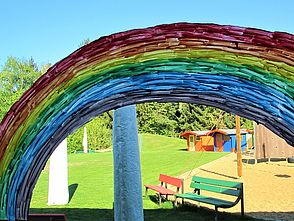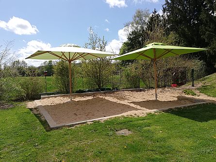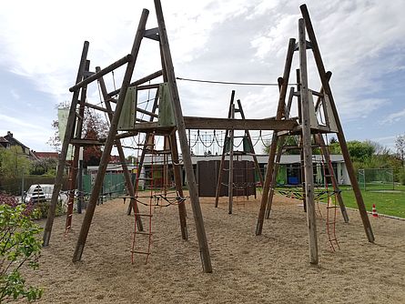 Die Königinnenschaukel, der Seilgarten, ein Fußballplatz, ein Basketballkorb, ein kleiner Berg, ein großer Sandkasten mit Wasserpumpe, ein Bodentrampolin, ein Balancierbalken und eine Kletterwand laden zum Bewegen, Spielen, Toben und Hüpfen ein. Auf unserer Terrasse fahren die Kinder gerne Inliner, springen Seil oder malen mit Straßenkreide.