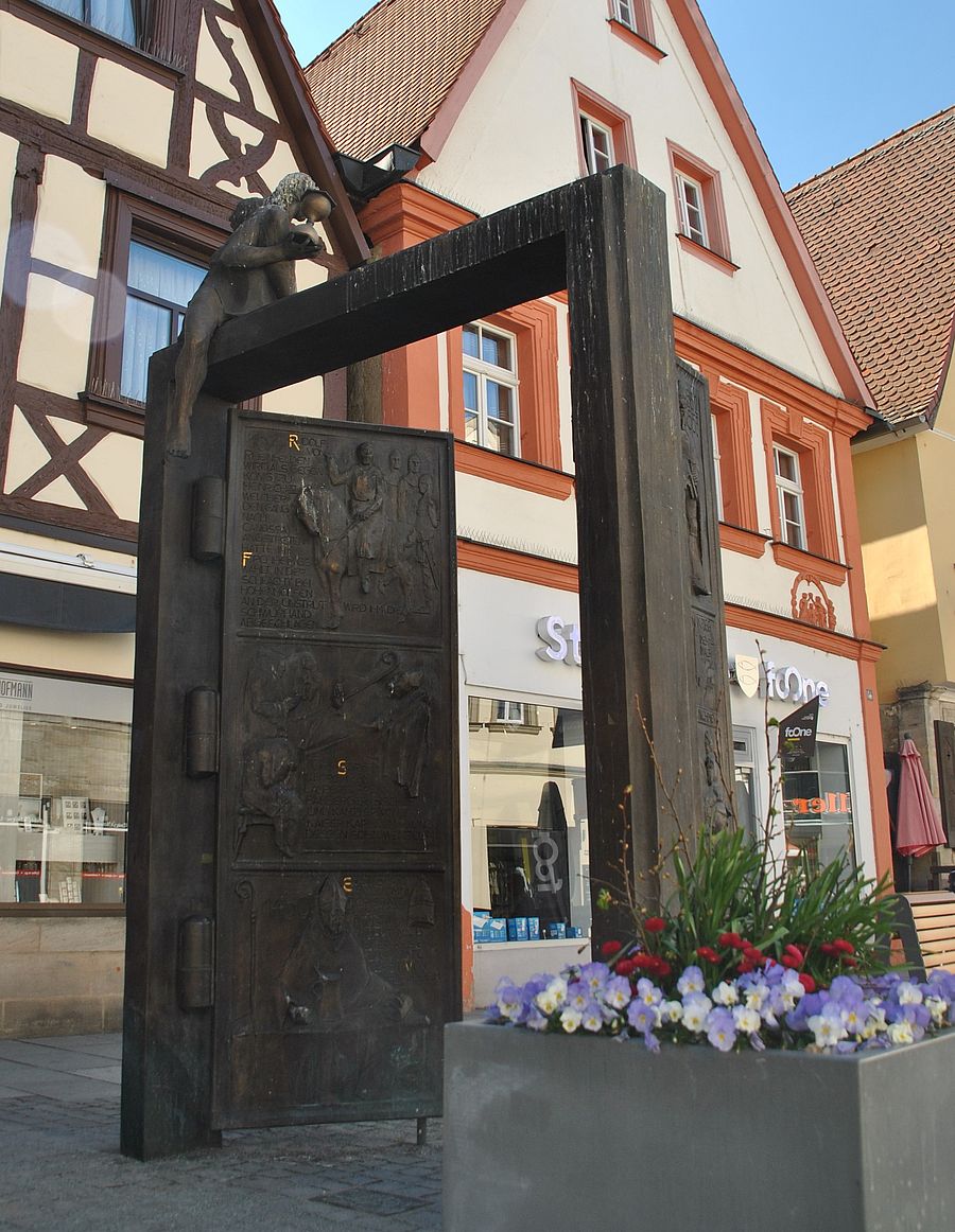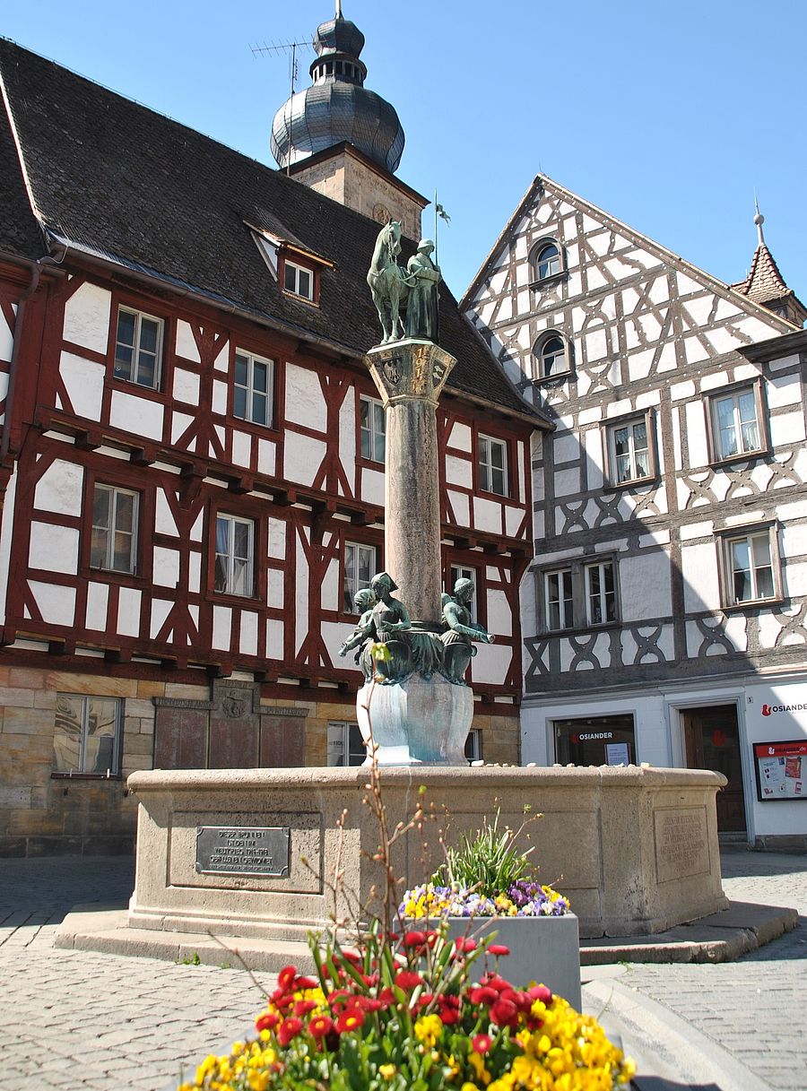 Der Kriegerbrunnen wurde 1927 errichtet und ist den Gefallenen im Ersten Weltkrieg gewidmet. Er ist ein Werk des Forchheimer Bildhauers Georg Leisgang. Auf einer Gedenktafel, die gegenüber dem Brunnen an der Hauswand angebracht ist, sind die Gefallenen namentlich aufgeführt. An der Stelle, wo heute der Kriegerbrunnen steht, diente früher übrigens ein Zieh- und später ein Pumpbrunnen dazu, die Bürger der Stadt mit Wasser zu versorgen. In der Osterzeit wird dieser Brunnen – genauso wie viele andere Brunnen in der Gegend – traditionell mit Ostereiern geschmückt.