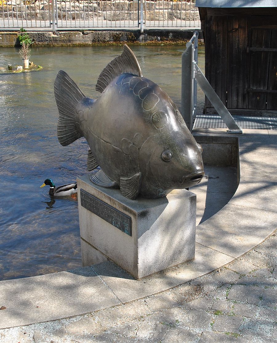 Die 1,30 Meter lange, 75 Zentimeter hohe und achzig Kilogramm schwere Bronzeplastik steht seit 2012 an der Wassertreppe am Marktplatz. Die vom Bildhauer Reinhard Eiber geschaffene Skulptur stellt einen Aischgründer Spiegelkarpfen dar. Der Fluss Wiesent, an dem die Figur steht, ist allerdings nicht die natürliche Heimat des Karpfens. Gezüchtet wurden die Fische in Forchheim vom späten Mittelalter an bis ins Jahr 1788 im sogenannten "Neuen Graben", bzw. "Seelgraben". Die verfüllten Gräben bilden heute die Areale des Parade- und Marktplatzes.