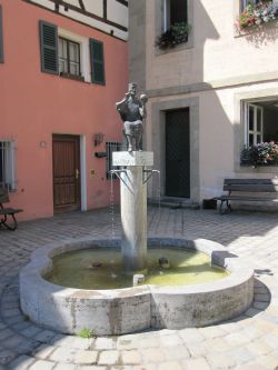 An der Stelle des Forellenbrunnens befand sich früher ein öffentlicher Brunnen, der zur Wasserversorgung der Bevölkerung diente, ehe er 1977 vom Forellenbrunnen, geschaffen vom Künstler Harro Frey, abgelöst wurde.