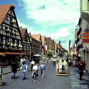 Zurück zum Rathaus führt der Weg durch die Hauptstraße, die Achse der um 1300 ummauerten Bürgerstadt. Auch dieser Straßenzug ist geprägt von dem charakteristischen Nebeneinander von Fachwerkbauten, die z. T. verputzt sind, und Sandsteinfassaden.