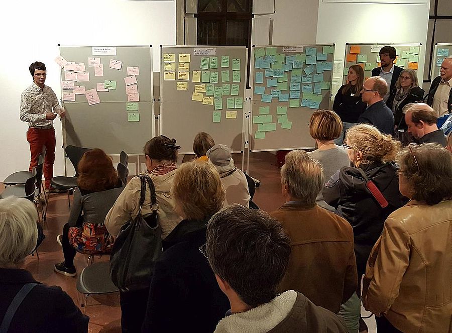 Nach umfangreicher Bestandsaufnahme von Stärken und Herausforderungen des Forchheimer Kulturbereichs, der schriftlichen Befragung der Kulturschaffenden, der Recherche der kulturpolitischen Positionen der Forchheimer Parteien und der Durchführung von Experteninterviews in der ersten Phase des Projektes bot Fischer nun mit Unterstützung des deutschlandweit renommierten Berliner „Netzwerk Kulturberatung“ um Dr. Patrick S. Föhl, Alexandra Künzel und Dr. Ulrich Fuchs den ersten Workshop an. Oberbürgermeister Dr. Uwe Kirschstein forderte die Teilnehmenden dazu auf, ergebnisorientiert zu arbeiten, zu netzwerken und auf dem „kulturellen Spielfeld die eigenen Ideen und die eigenen Positionen einzubringen und den politischen Spielball außen vor zu lassen“.