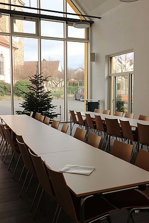 Saal durch Faltwand zu Foyer erweiterbar