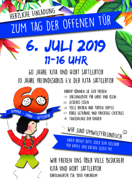 Team, Kinder und Eltern der städtischen Kindertagesstätte mit Hort bieten ihren Gästen an diesem Tag fünf Stunden lang Spielangebote für Groß und Klein, leckeres Essen, tolle Kuchen, Torten und Kaffee, kühle Getränke und fruchtige Cocktails und eine Tanzeinlage der Kinder.