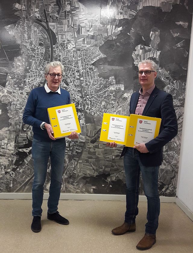 „Es fehlte nie am Willen der städtischen Behörden, einen Hochwasserschutz für Kersbach zu planen und zu bauen“, stellt Tiefbauamtsleiter Werner Schaup heraus. „Forchheim steht seit langem bereit, mit dem Bau des Rückhaltebeckens zu beginnen“, sagen Oberbürgermeister Dr. Uwe Kirschstein und Tiefbauamtsleiter Werner Schaup unisono, doch die „immer wieder neuen Auflagen des Wasserwirtschaftsamtes und des Umweltministeriums sind teilweise irritierend gewesen“.
