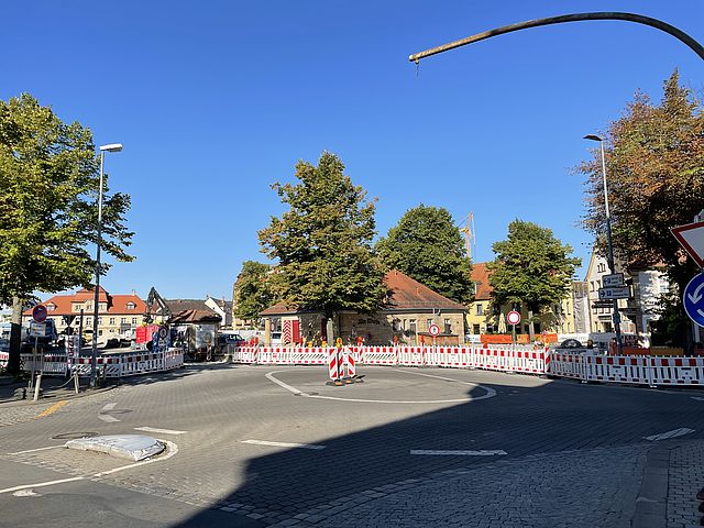 Ab dem 19. August 2022 kann von der Hornschuchallee wieder in die Burgerhofstraße zugefahren werden. Die Ausfahrt von der Burgerhofstraße erfolgt in Richtung Marktplatz.