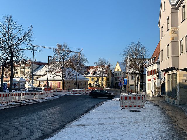 Der Individualverkehr und die Buslinien können von der Nürnberger Straße in Richtung Marktplatz bzw. Klosterstraße fahren. In der Gegenrichtung ist keine Durchfahrt zur Nürnberger Straße möglich.