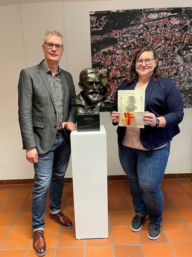 Oberbürgermeister Dr. Uwe Kirschstein freute sich sehr, die Finanzspritze zusammen mit einer Urkunde an eine "tolle Stipendiatin, die sich im Ehrenamt engagiert" im Rahmen einer Feierstunde übergeben zu können.