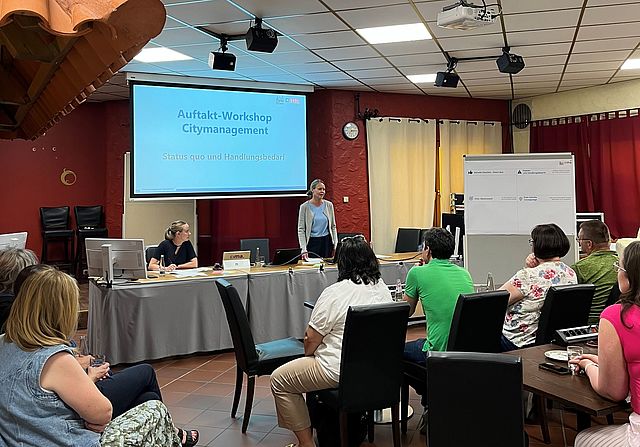 Nach den Begrüßungsworten von Oberbürgermeister Dr. Uwe Kirschstein wurden alle Teilnehmenden auf den gleichen Kenntnisstand gesetzt. Citymanagerin Susanne Winter präsentierte die zentralen Erkenntnisse aus den Gesprächen mit den Innenstadt-Akteur*innen.